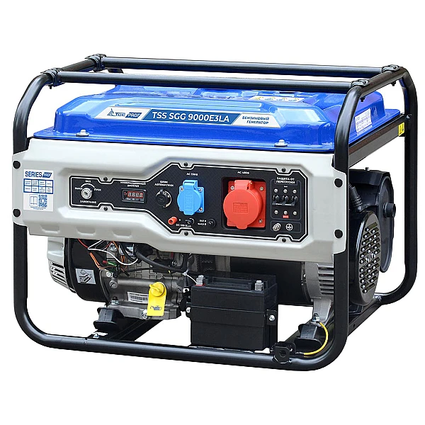 Бензиновый генератор TSS SGG 9000E3LA с номинальной мощностью 8 кВт - это трехфазная установка профессионального класса, которую можно успешно использовать как в роли страховки от перебоев с электричеством, так и в качестве главного источника энергии.