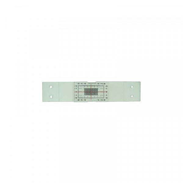 Деформационная шкала представляет собой 2 пластиковые пластины, на одну из которых нанесена миллиметровая сетка и шкала отсчётов, а на вторую контрольное перекрестие.