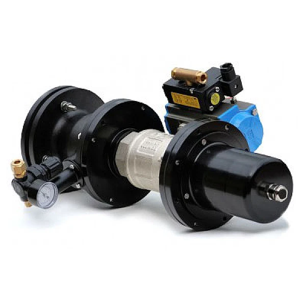 Встроенный шаровой клапан, смонтированный между каждым приемо-передатчиком и его аппаратом для продувки воздухом, действует как автоматический запорный клапан, который закрывается в случае нарушения подачи сжатого воздуха или электропитания. |