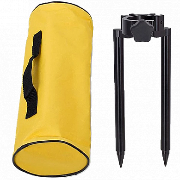 Мини-бипод используется для установки мини-вех . Для закрепления этих геодезических приспособлений используется зажим с винтом. Нижняя часть опор имеет заостренную форму, что дает возможность надежно зафиксировать их в мягком грунте.