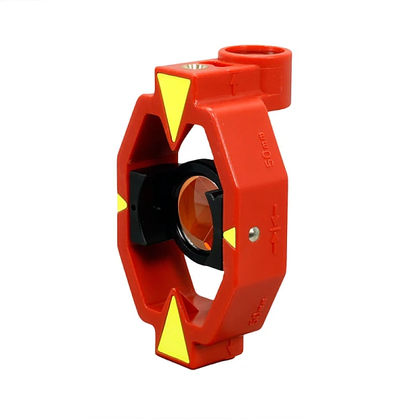 Корпус призмы окрашен в ярко-красный цвет и снабжен контрастными стрелками, указывающими на центр мишени. Это упрощает нахождение и идентификацию при тахеометрической съемке на дальних расстояниях.