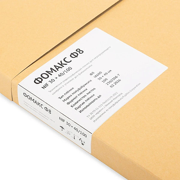 ФОМАКС Ф8 производится в формате листовой радиографической пленки (30 × 40 см), упаковывается по 100 листов в светонепроницаемый конверт.