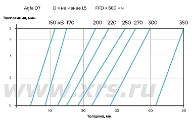 Ниже приведены номограммы экспозиций для направленных и панорамных рентгеновских аппаратов RayCraft XS при просвечивании стали.