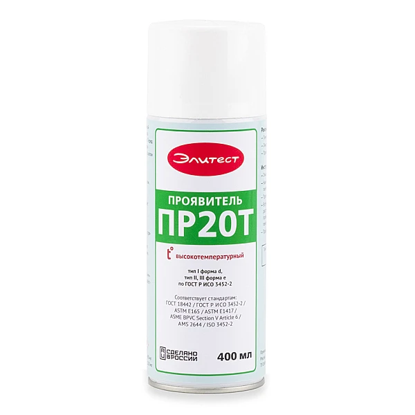 Элитест ПР20Т является аналогом стандартного проявителя Элитест ПР21, адаптированным для использования при высоких температурах: предельная температура контролируемого изделия может достигать +200 °С.