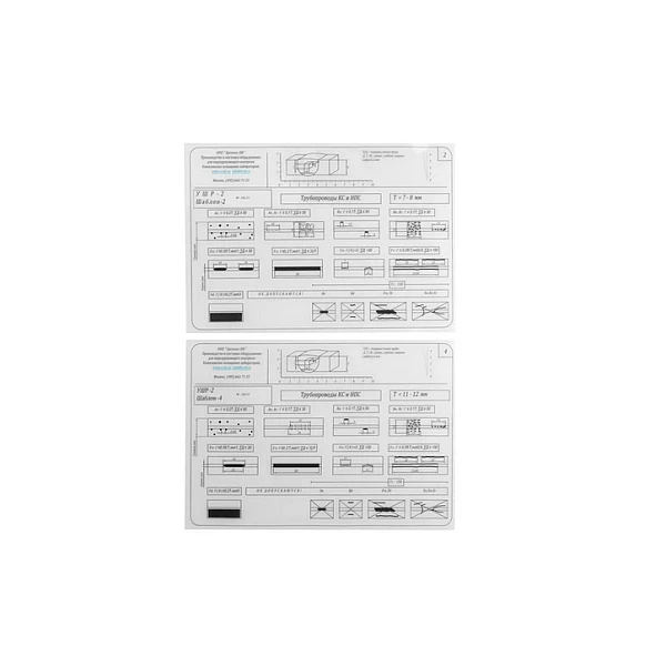 Универсальный шаблон радиографа УШР-5 это набор из 11 шаблонов прозрачной пленки, накладываемой на радиографический снимок сварного шва трубы магистрального трубопровода. Шаблон помогает быстро и точно оценить дефектность сварных соединений. УШР-5 создан под нормы руководящего документа АК «Транснефть» РД-25.160.10-КТН-016-15.