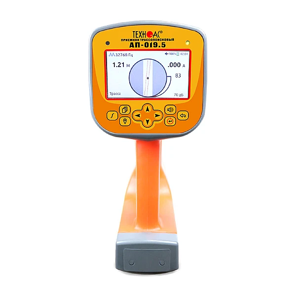 В составе комплекта приемник в виде моноблока с цветным ЖК дисплеем, на который выводится изображение трассы и в автоматическом режиме происходит расчет глубины залегания коммуникации до 30 м, а также величины тока в линии. Встроенный GPS\ГЛОНАСС модуль для определения и записи координат нахождения коммуникации. Режим «Зонд» для трассировки НЕМЕТАЛЛИЧЕСКИХ коммуникаций с помощью внутритрубного генератора (дополнительная опция).